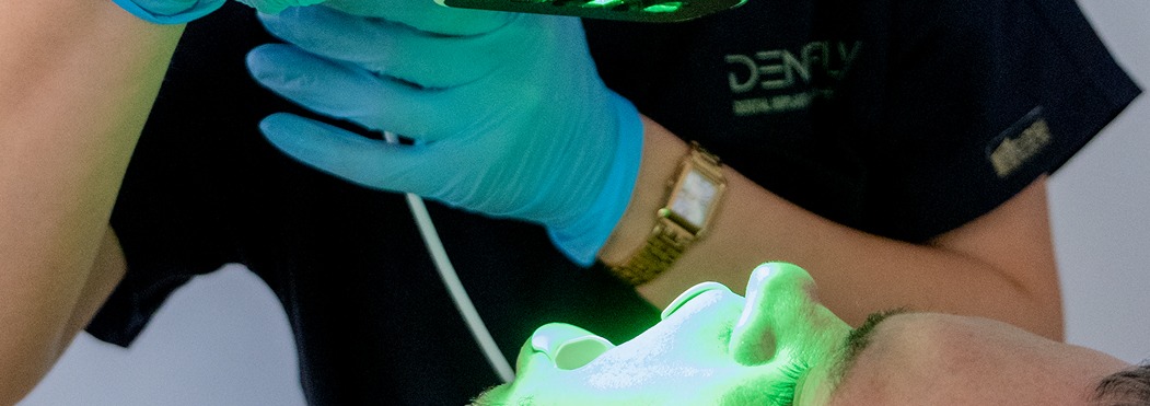 - Laser Depigmentation (Biostimulation): If your gums feature naturally dark or uneven pigmentation, our specialists use targeted laser therapy to gently lift the color. This reveals a healthy, uniform, and beautiful light pink canvas for your new porcelain teeth.